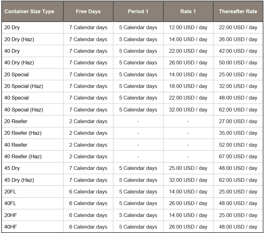 A storage charge is applicable, after the free time expires, for containers left inside the container yard.